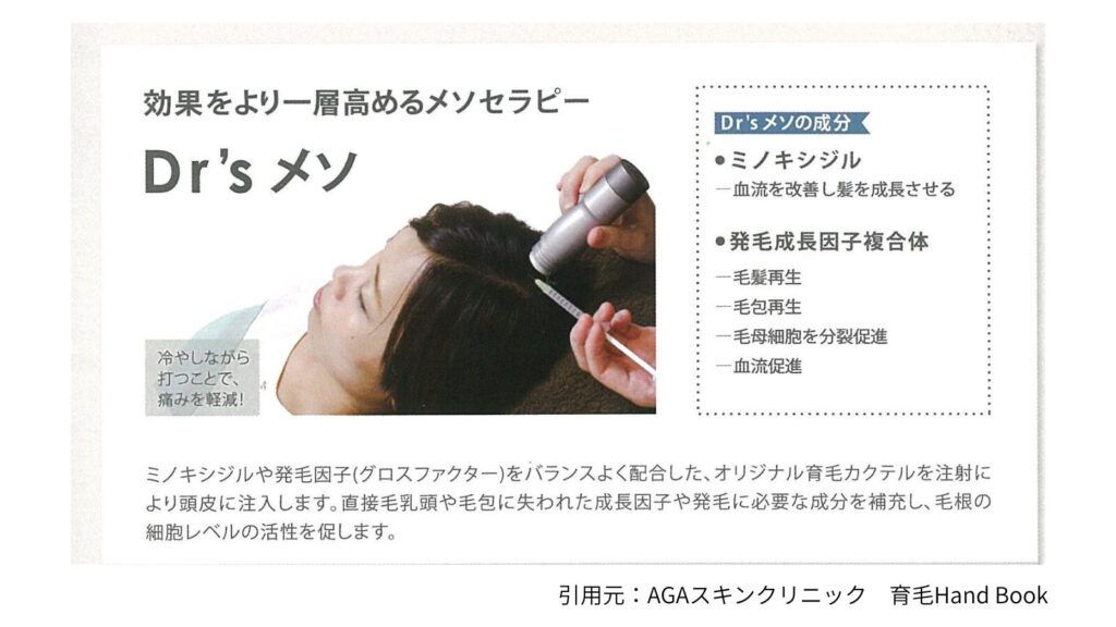 ただ、私は早く発毛を実感したかったので、おもいきって注射治療(Dr’sメソ)をお願いしました。