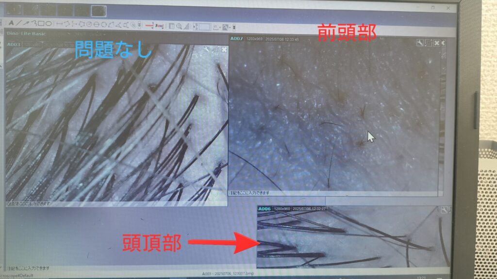 ただ、この旋毛の薄毛はマイクロスコープを使う前に、看護師の方から教えてもらいました