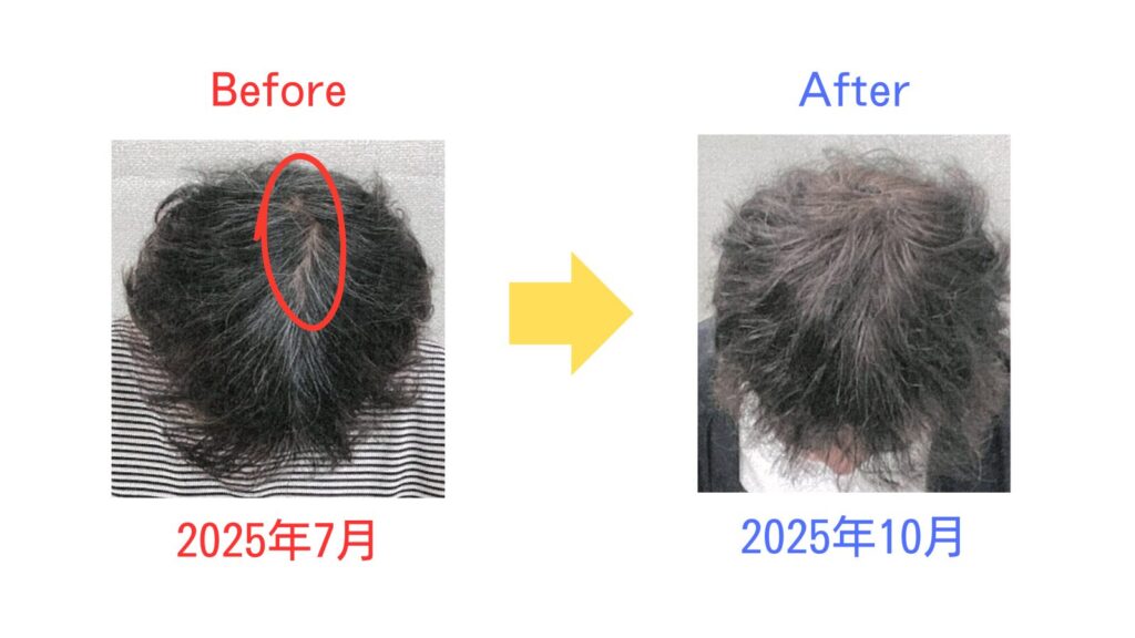 私はAGAスキンクリニックでの治療と薬の服用で、この部分はたったの3カ月で改善できました